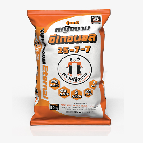 หญิงงาม อีเทอนอล 25-7-7 (Mg 0.2% + Ca 0.5% + S 5.5% + Zn 0.2% + B 0.1%)