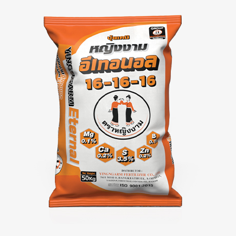 หญิงงาม อีเทอนอล 16-16-16 ( Mg 0.1% + Ca 0.2% + S 3.5% + Zn 0.2% + B 0.1% )