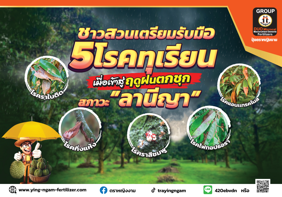 5 โรคทุเรียนที่ต้องเฝ้าระวังในช่วงฝนตกชุก ลานีญ่า...